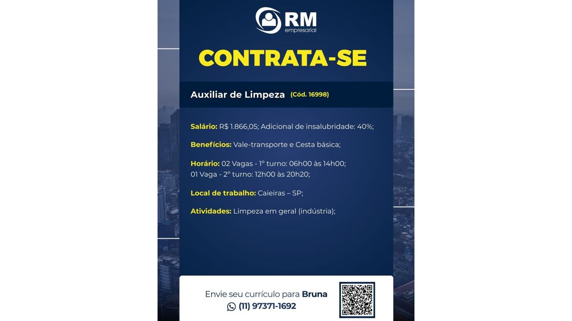 - 2 vagas – 1º turno: 06h00 às 14h00
